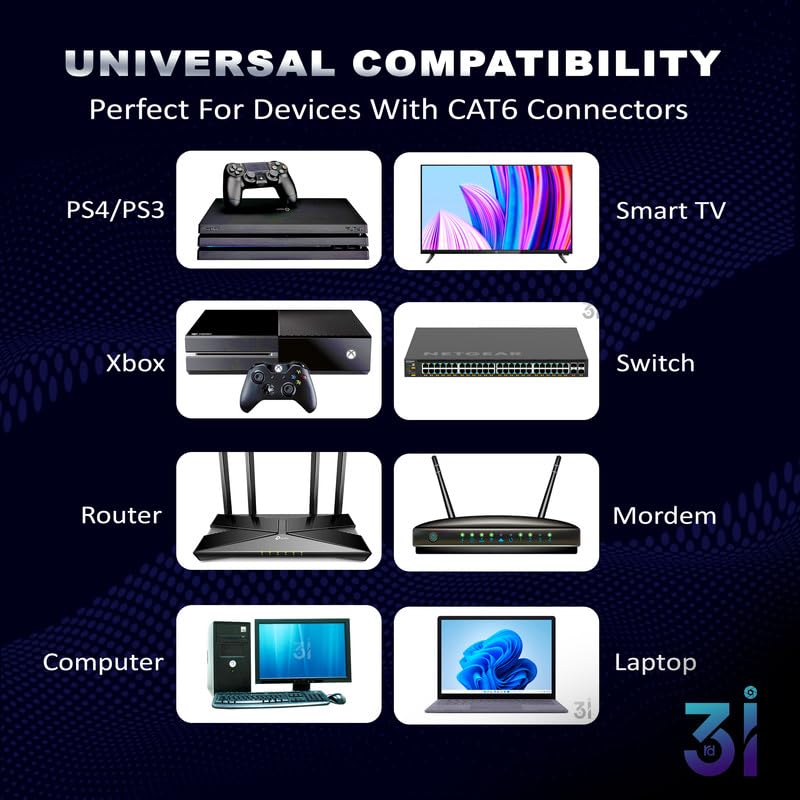 HIGH-PERFORMANCE- The Ethernet Cord with 24 AWG CCA Wire provides Universal Connectivity for LAN Network Components such as PCs, Computer Servers, Printers, Routers, Switch boxes, TV, Gaming Devices, network media players, NAS, VoIP phones, PoE devices, and more.