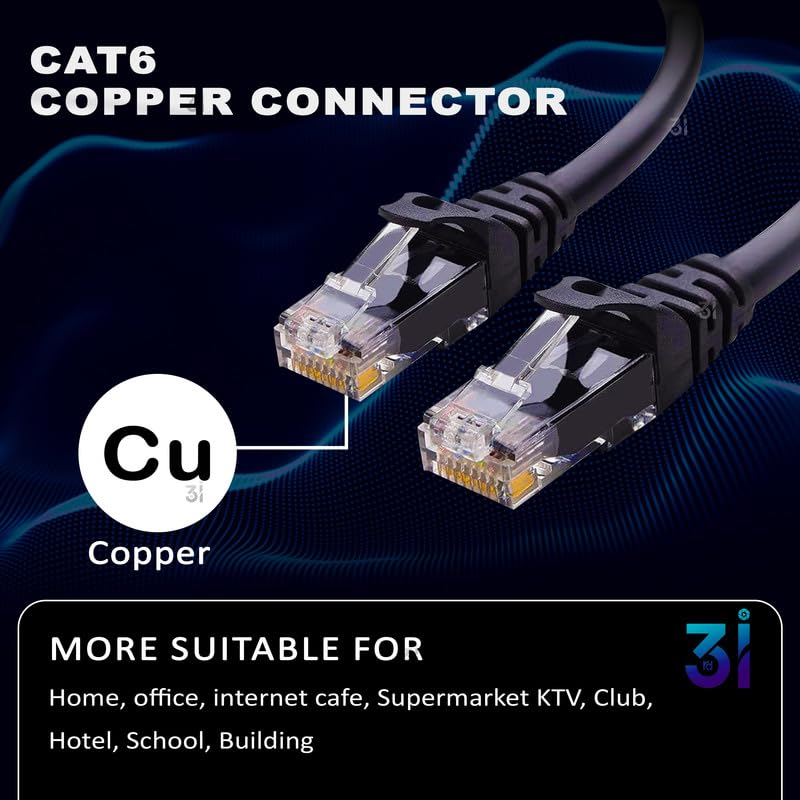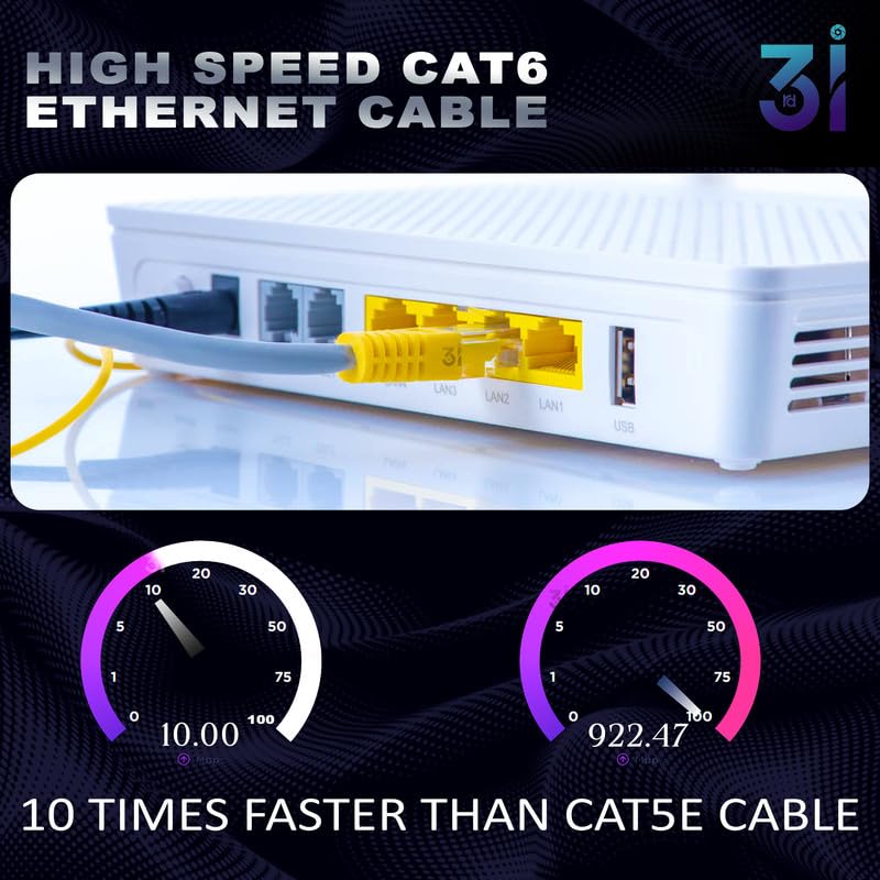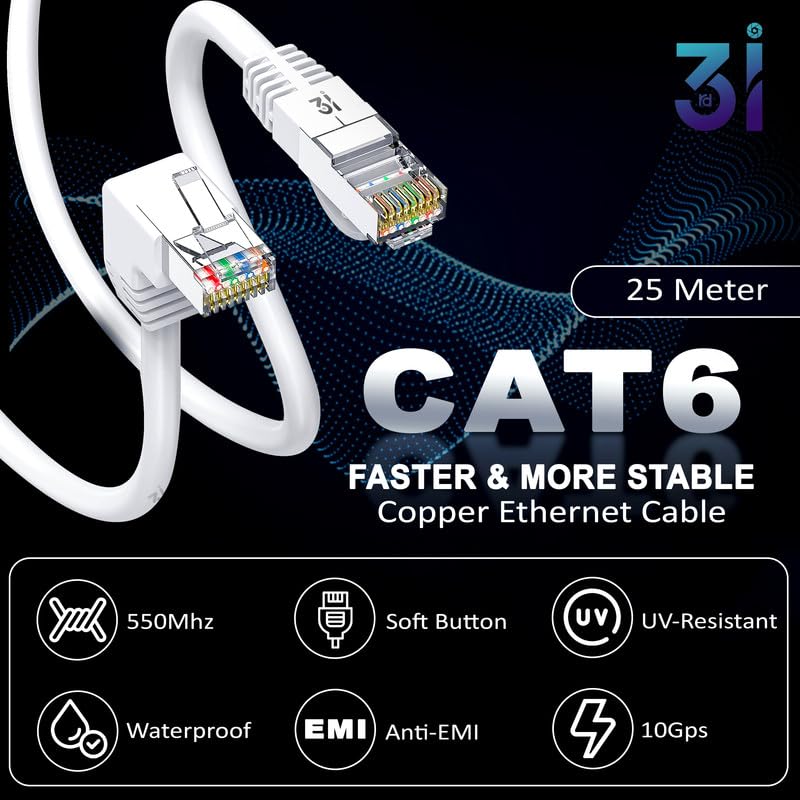 3rd i 25 Meter Cat6 Ethernet Cable High Speed 550MHZ / 10 Gigabit Speed UTP LAN Cable|Heavy Duty Copper Cable|Network Cable Internet Cable RJ45 Cable LAN Wire, for Modem,Router, PC