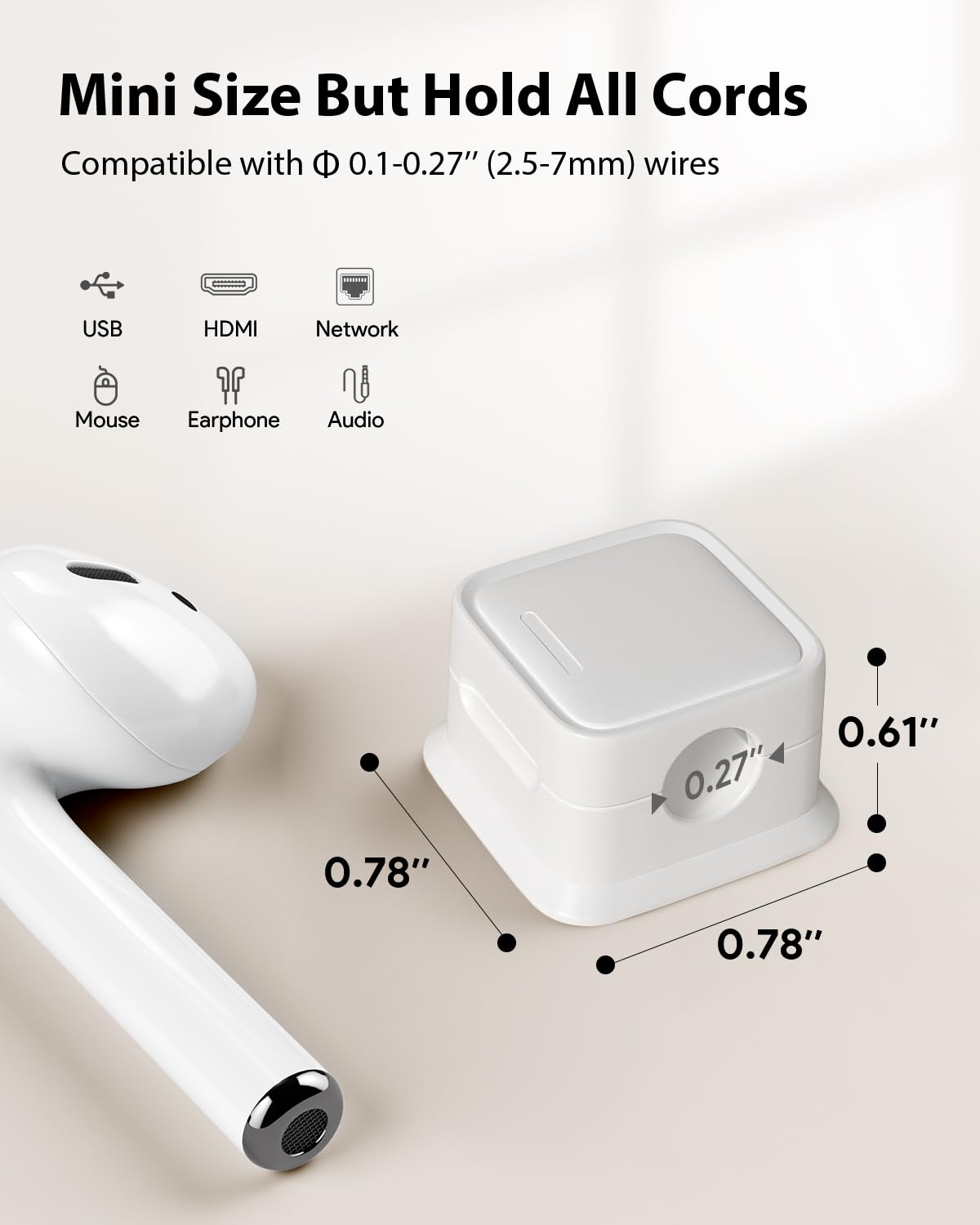 Keeping All Cords Organized : Diameter of about 0.3in allows to hold most cords, such as Phone Charging Cords,Type-C charging cords, lightning cords, HDMI cords, USB cables, computer power wires, network wires, mouse cords, keyboard cables, headphone cords. [Warm Tips] After sticking the cord holders, please WAIT for 30 minutes before using for better adhering effect