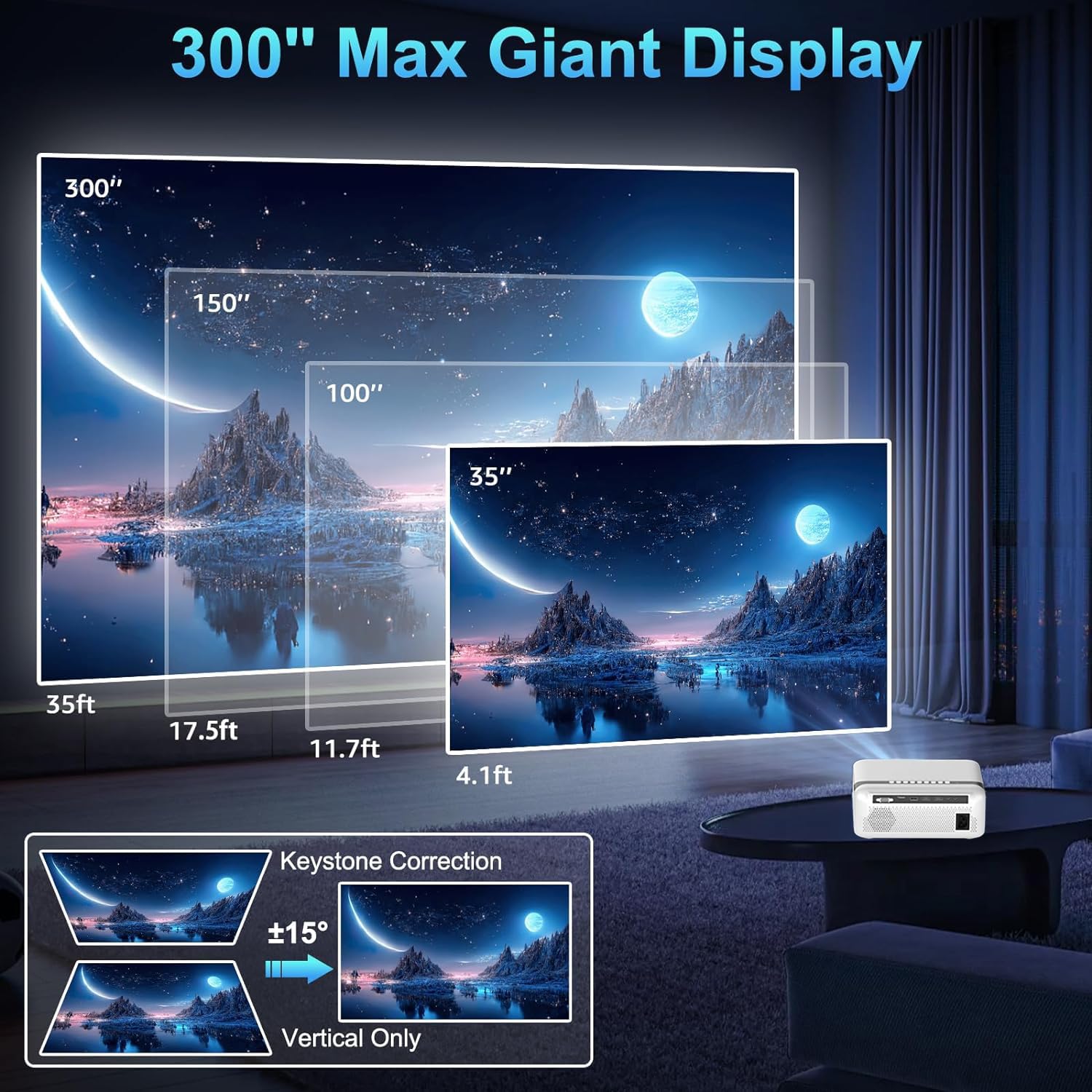 【🔥 2024 Electric Focus, Auto Keystone, High Brightness, Native 1080P Full HD Projector 🔥】 AUN MegaPix projector is native Full HD 1980*1080P, 10000 Lumens High Brightness, 10000:1 contrast ratio, 16:9/4:3 aspect ratio, which offers stellar resolution and consistently vibrant colors, whether watching fast-paced action scenes or tranquil panoramic shots. And the zoom function allows for crisp edges, even when zoomed in 100%