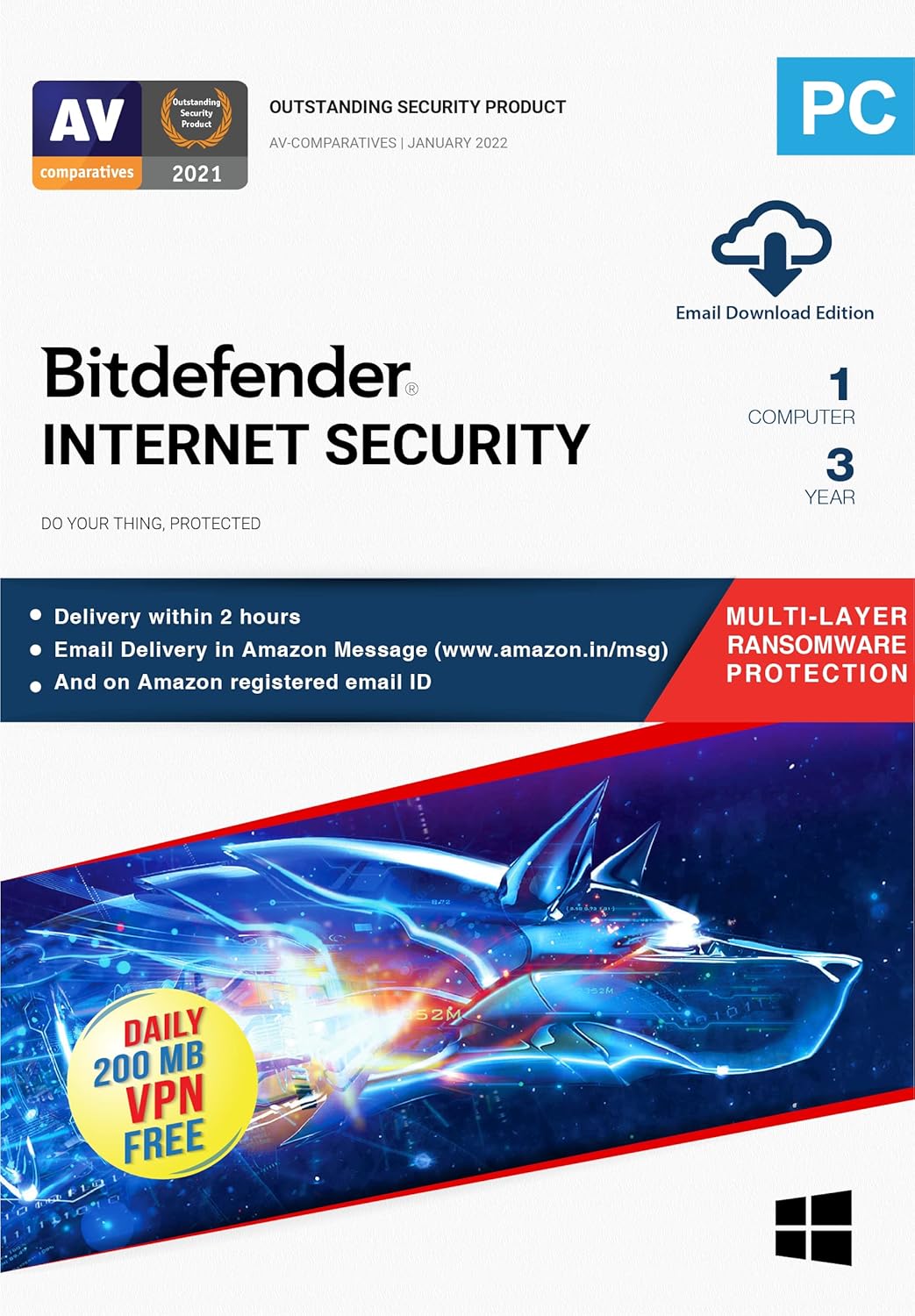 BitDefender Internet Security – 1 User, 3 Years Windows (Email Delivery in 2 hours – No CD)
