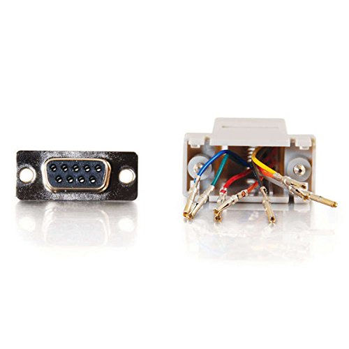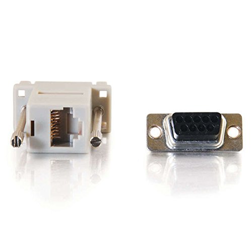 Cablesetc db9 female to rj45 female rs232 modular adapter product description:Using modular adapters with inexpensive silver satin or flat oval twisted pair wire has become a standard way to run client server applications.Needing to connect dumb terminals on the desktop back to a central patch panel or directly to a mux via rs-232 many network planners have implemented modular adapters as the most cost-effective way to complete the connections. Whether used in a wiring closet or throughout the office color-coded modular adapters lend easy identification and differentiation to your cable plan. By color-coding your connections you reduce troubleshooting time while taking full advantage of the benefits of this modular adapter approach. Please note: Picture shows this adapter before assembly, this modular adapter will need to be assembled so that it is functional. There is not a universal way to assemble so please contact your hardware manufacturer for details.