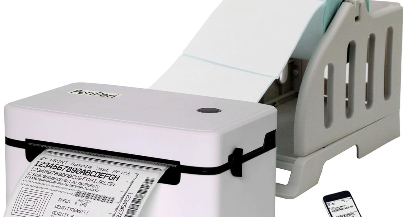 PeriPeri 4inch Bluetooth Direct Thermal Label + Receipt Printer for Any Size Labels & Receipts Compatible with Android, iOS, Windows, Mac, Linux 152mm/s (4×6 Printer Black White)