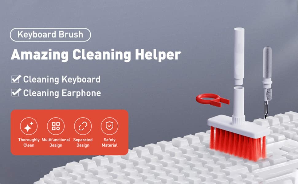 It has 4 kinds of cleaning head for deep cleaning every corner of your keyboard and earphones, and a metal pen tip to help you deal with the stubborn dust