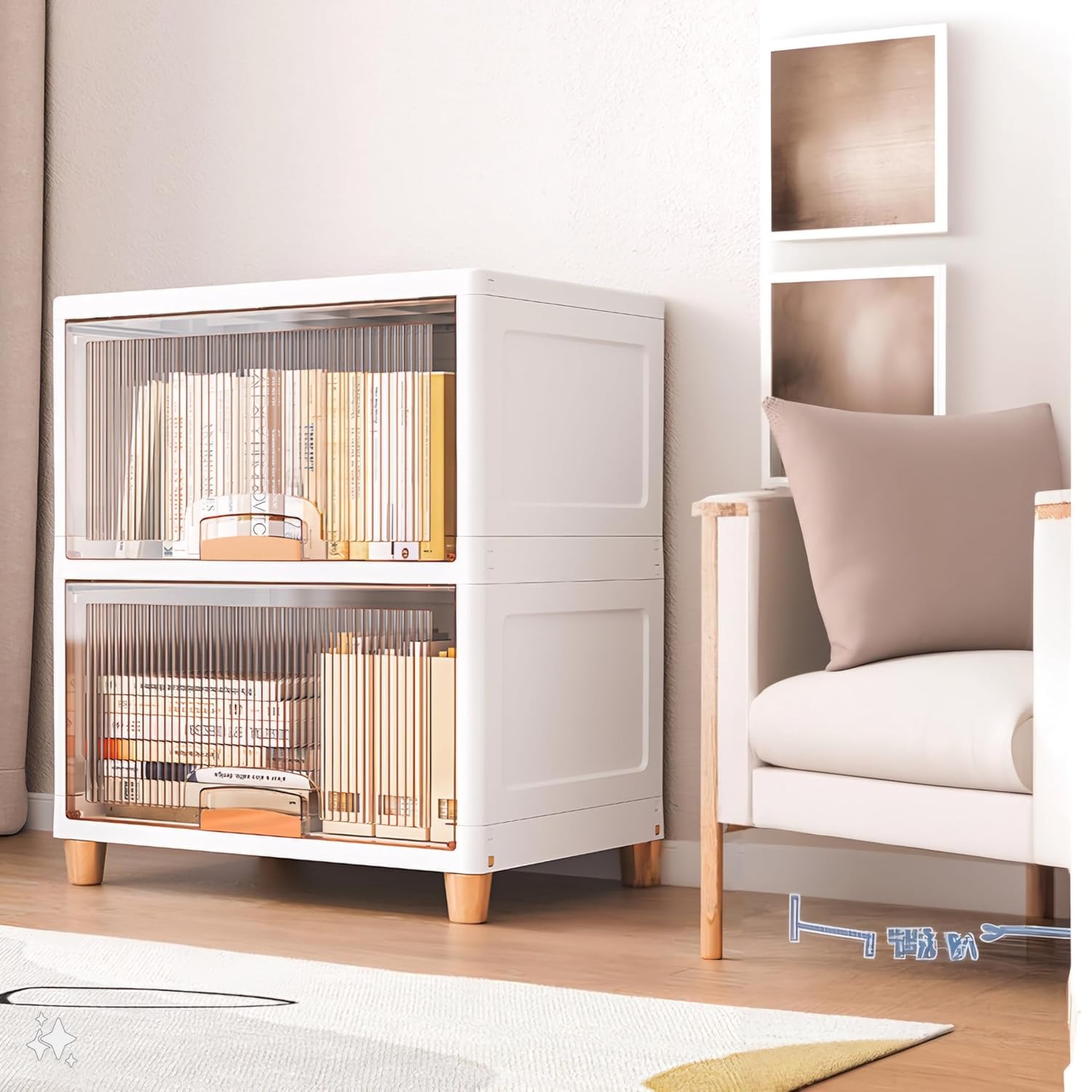 mechdel Stackable and Foldable Wardrobe, Foldable Shirt Storage Stacker, Collapsible Wardrobe, Mounted Closet Storage and Organisation System (Cupboard Rack -(Transparent single door ), 2PCS)