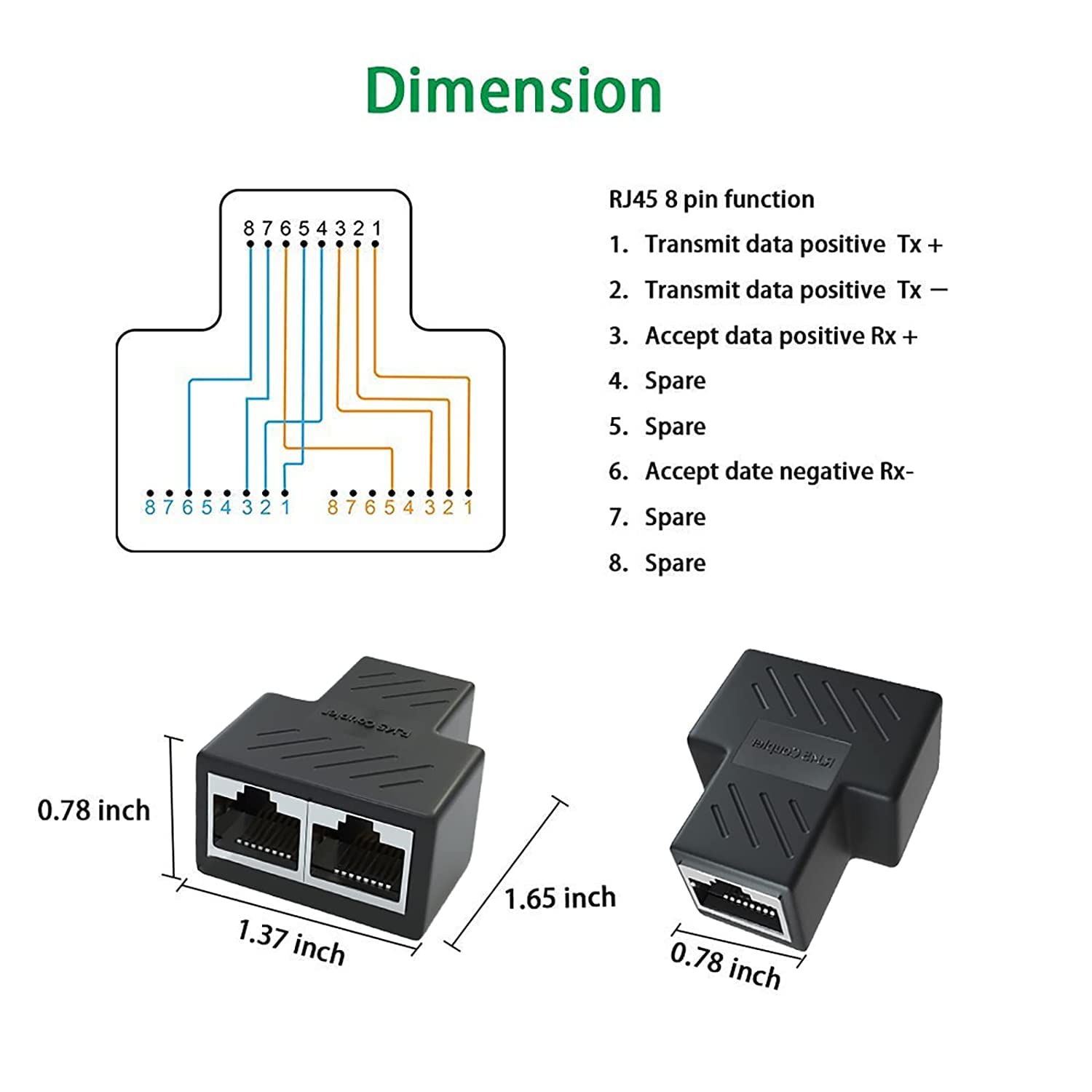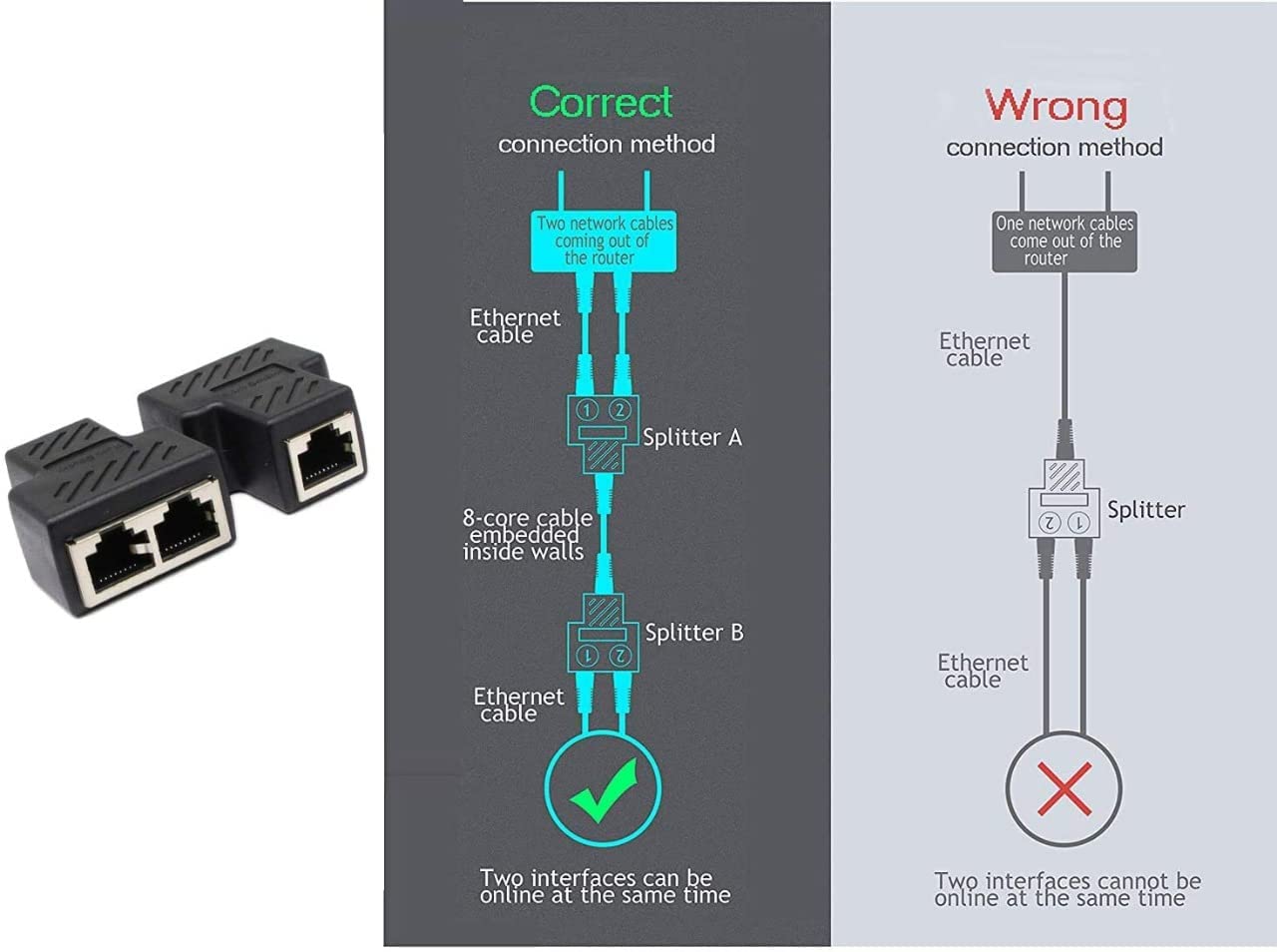 rj45 splitter/ethernet splitter 1 to 2 Female 8P8C Network Plug Lan Coupler For Laptop, Router, Personal Computer,Modem Server (Black)