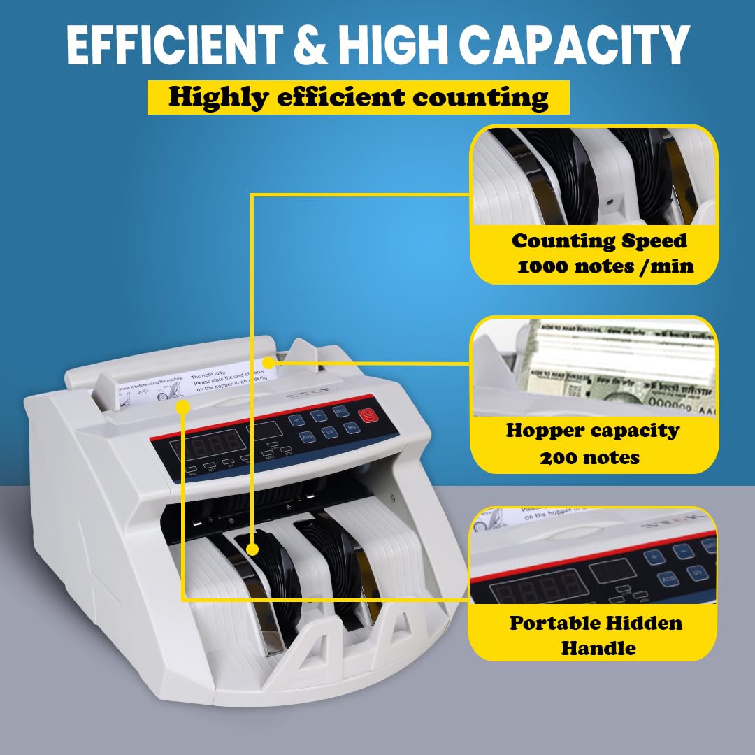 PRECISE DETECTION – Counts Old And New Denomination 10,20,50,100,200,500,2000 INR,Three powerful methods to detect counterfeit Notes UV – ultraviolet, MG – magnetic and IR – infrared; Three modes can be used simultaneously or separately, guaranteeing the most precise outcome(Machine can show the wrong counting or total number of notes if the customer puts soiled or dirty notes in the machine).