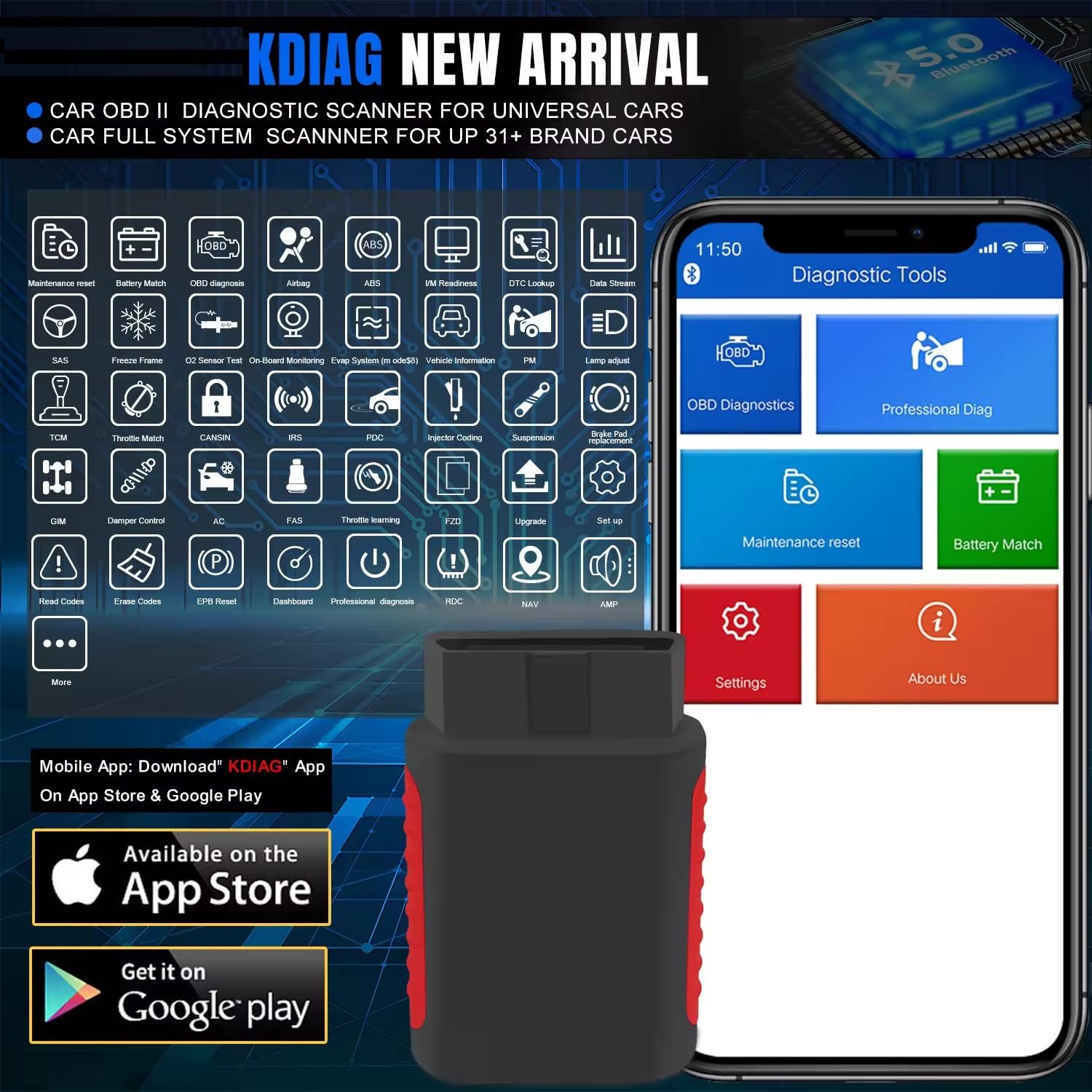 Multi Special functions For AUDI, BMW, Lexus, Benz, Lamborghni, Mini, Rolls-Royce, Maybach, Volkswagen, Bentley, Bugatti, Seat, Skoda, Honda, Acura, Nissan, Infiniti, GM, Chevrolet, Buick, Cadillac, GMC, Pontiac, Saturn, Hummer, Hoden, Ford, LincoIn, Mercury, Toyota, Mazada, SUZUKI, SUBARU, MITSUBISHI and so on .. : 1. Oil Reset ( Maintenance Reset), 2. Battery Match, 3. EFB Reset, 4. DPF ( Diesel Particulate Filter ) etc..we will add more on kdiag app step by step.